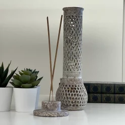 Global Crafts Handmade Jali Soapstone Incense And Candle Holder