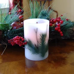 LumaBase Luminarias 2-Piece Pine Needle Flameless LED Timer Candle Set