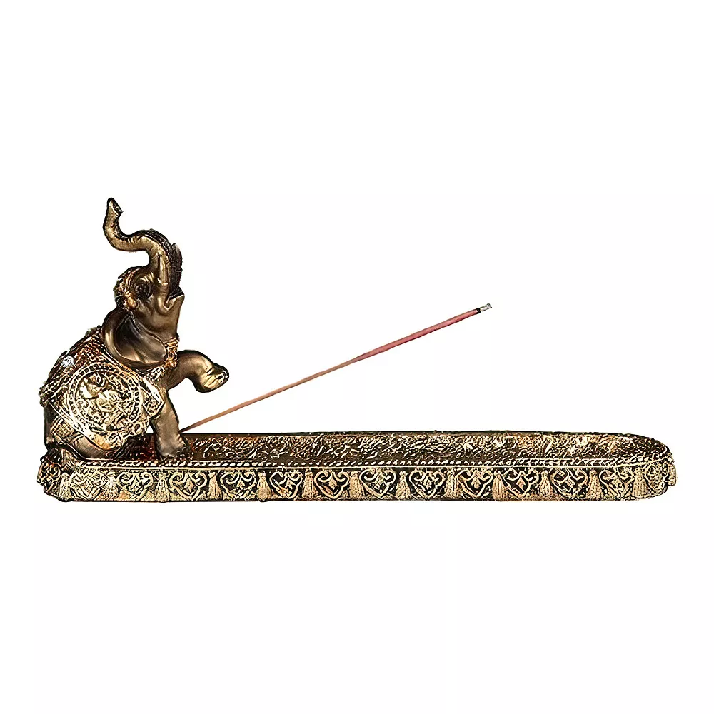 F.C Design FC Design 10"W Gold Thai Elephant Buddha Wraps Incense Burner Incense Sticks Holder Home Decoration