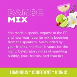 - Fragrance notes: cranberry fizz, lime, sparkling bubbly, freesia, patchouli, and musky
