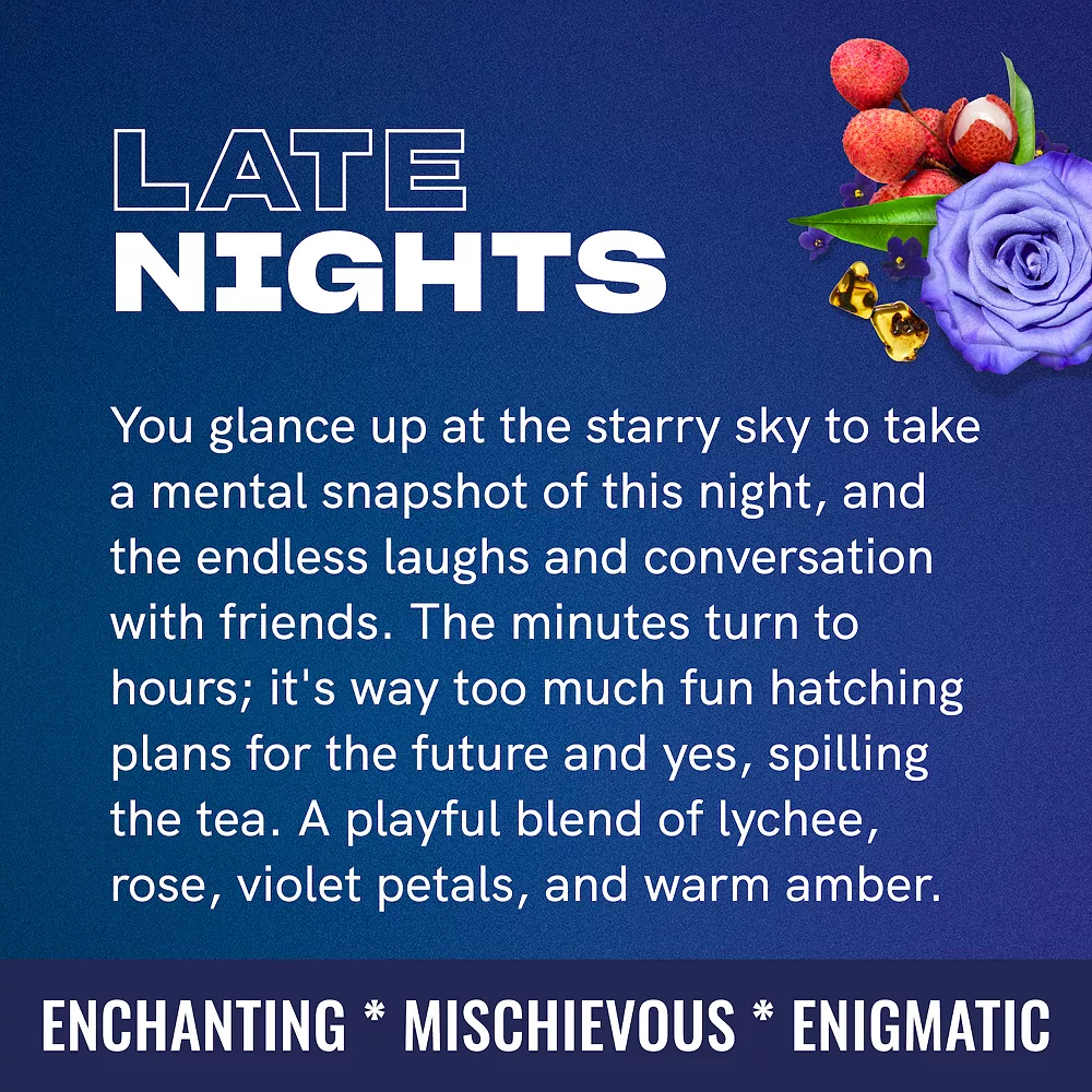 - Fragrance notes: mystical lychee, violet petals, rose, freesia, patchouli, ambery, and moss
