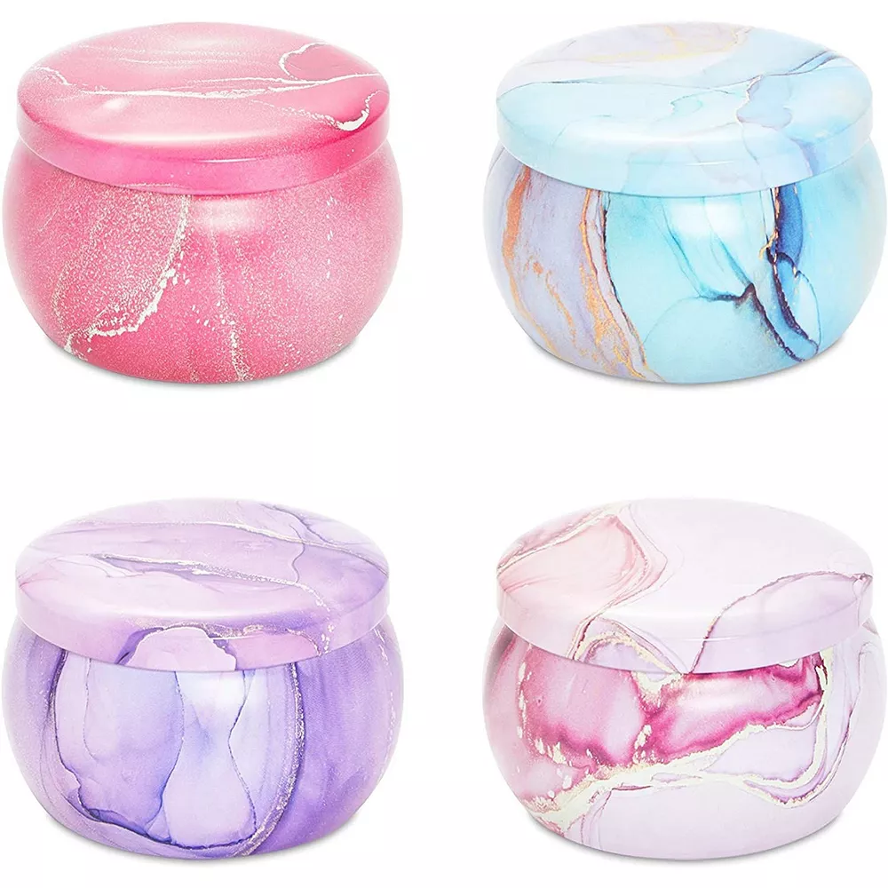 This set of 4 scented soy candles come in 4 relaxing scents, including vanilla coconut, wild lily freesia, jasmine and honeysuckle, and blackberry dusk. The candle gift set features vibrant marble tins, making them the ideal gift for an upcoming housewarming party, baby shower, or engagement.