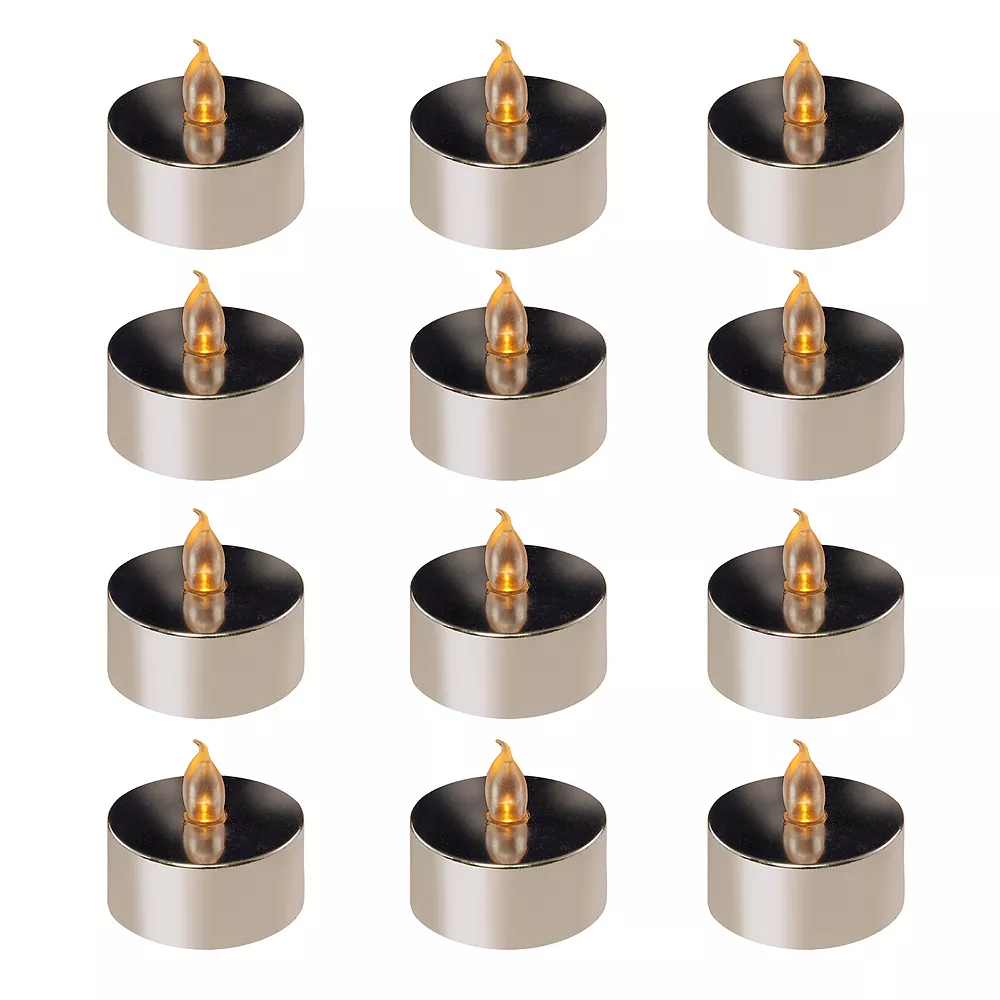 Illuminate a party, event or celebration with the twinkling glow of battery operated tea light candles. This set of 12 flameless candles are a safe and easy alternative to traditional candlelight. The lovely glow of LED tea lights add elegant illumination on tables, mantles and table settings for special occasions or everyday home decor.