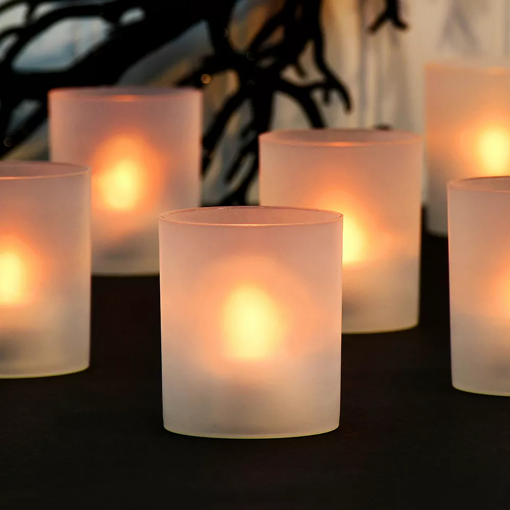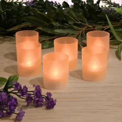 Bring ambient elegance to any event with this LumaBase Battery Operated LED Votives with Timer – Orange Battery 6-piece Set.