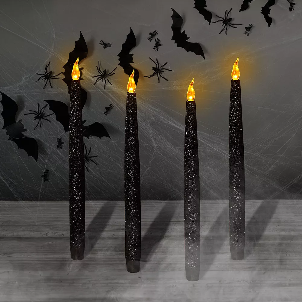 Create a relaxing ambiance with this LumaBase Black Battery Operated LED Candles With Flickering Flame 4-pack Set.