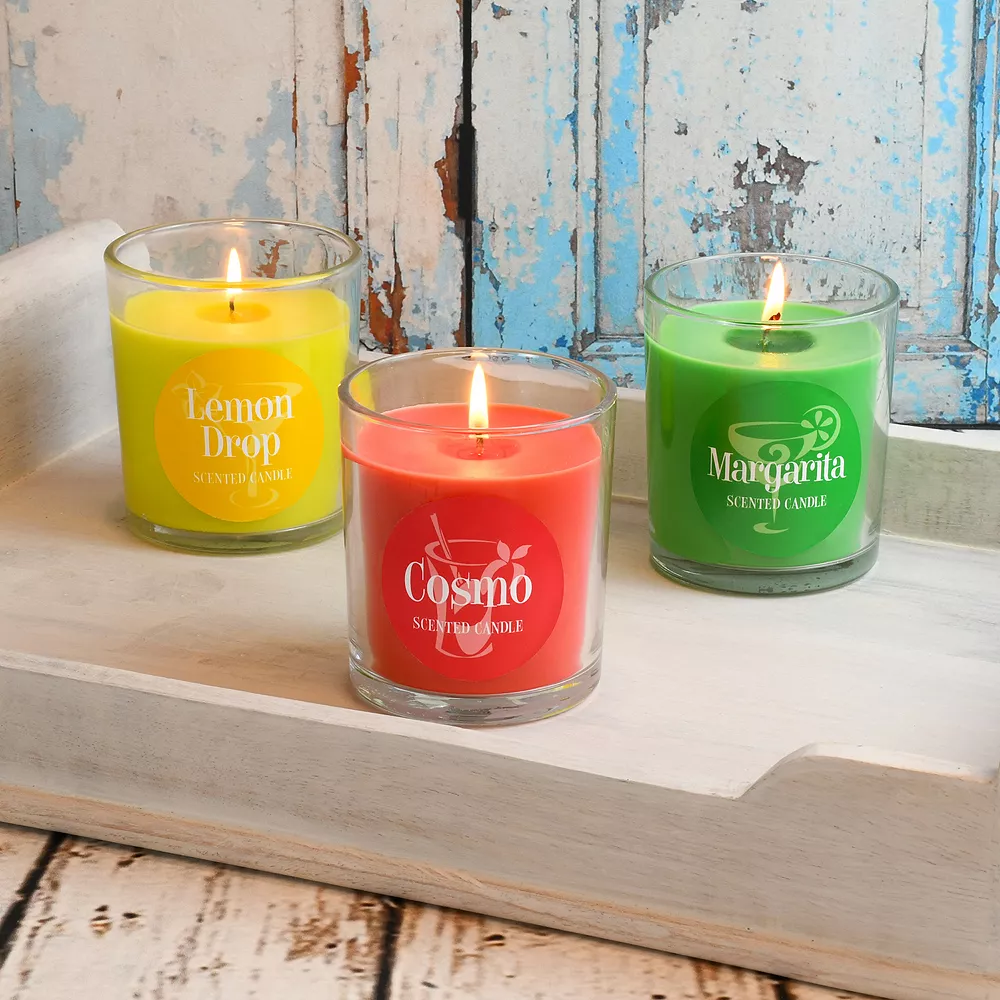 Elevate your space with the warm glow of this LumaBase Cocktail Scented Candle Collection 10-oz. 3-piece Set.