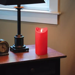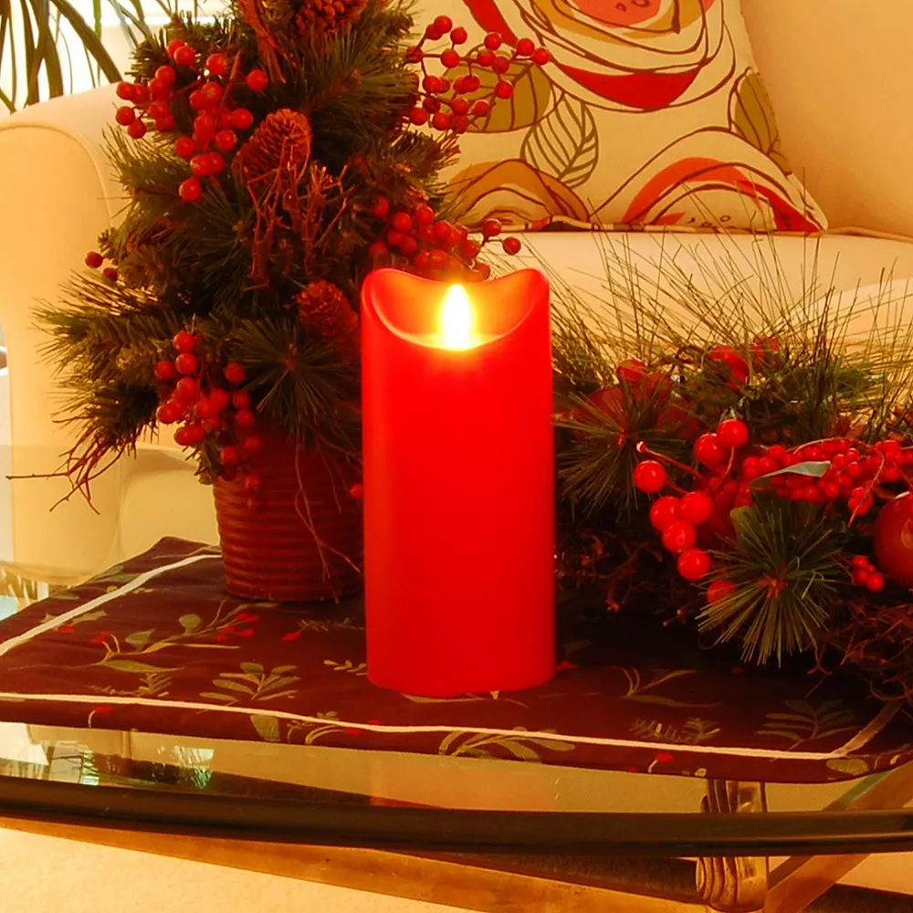 Illuminate any room with the elegance of this LumaBase red LED pillar candle, featuring a flameless natural flicker.
