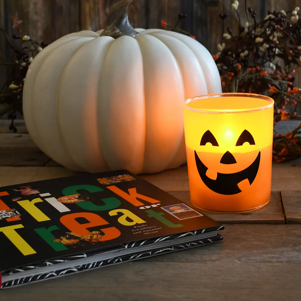 Add decorative flair for a special occasion to your walkway, entryway sidewalk or driveway with these LumaBase Jack-o’-Lantern LED candles.