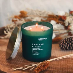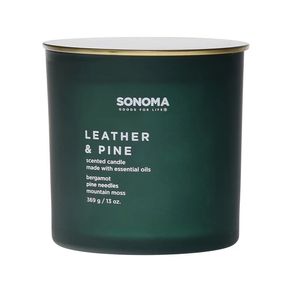 Bring the cozy aroma of this Sonoma Goods For Life Leather & Pine 13-oz. Candle Jar to your home decor.