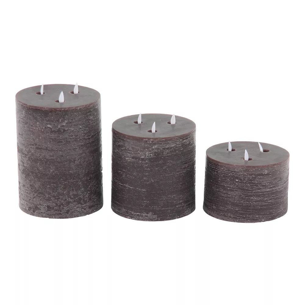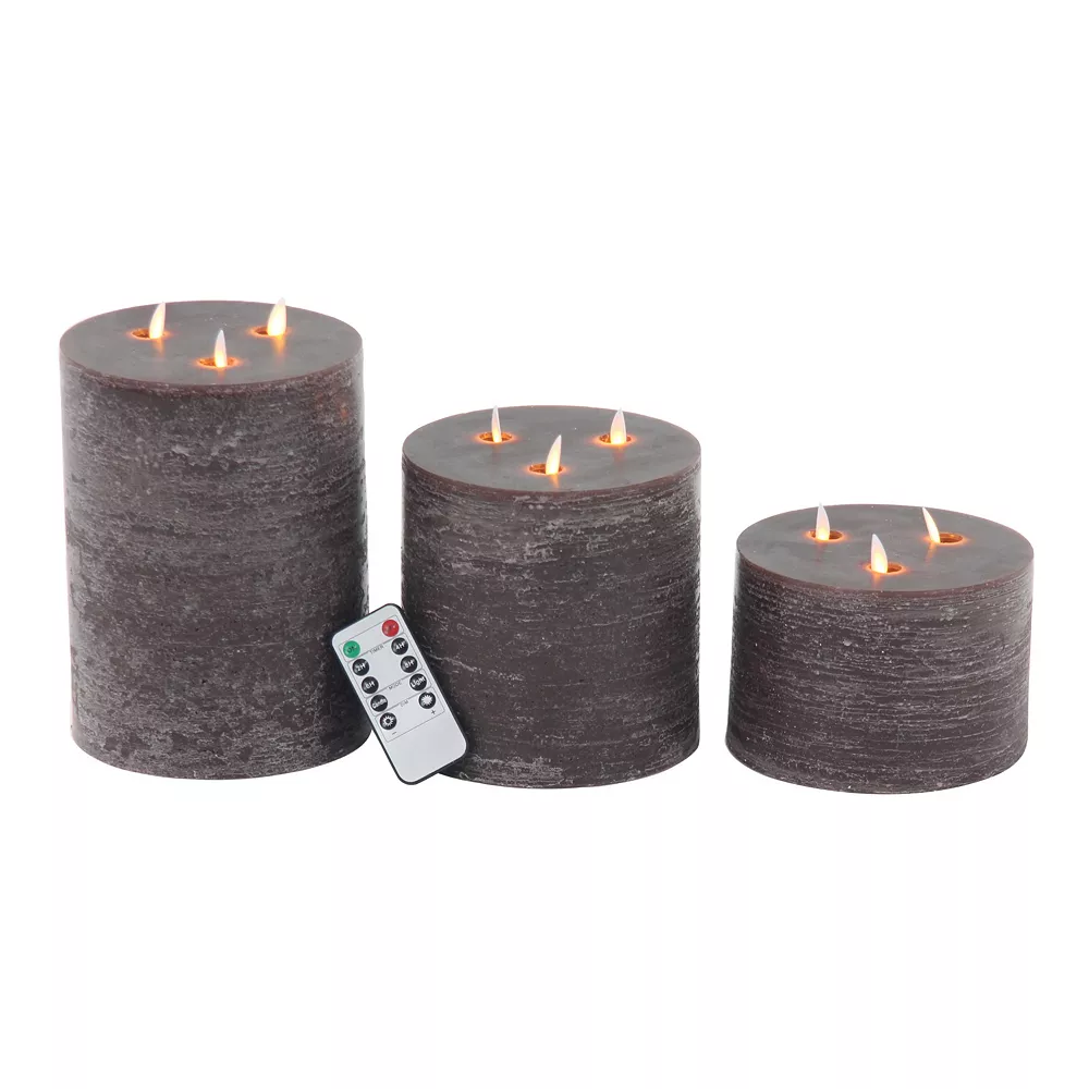 Upgrade your home with this Stella & Eve Modern Brown Flicker LED Pillar Candle 3-piece Set.