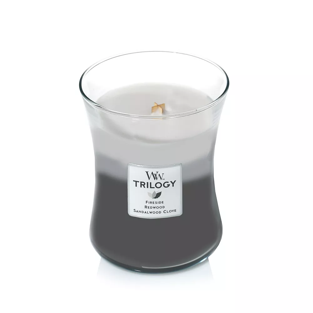 Fireside, redwood, and sandalwood clove fragrances blend perfectly to produce the essence of a cozy evening by a warm fire.