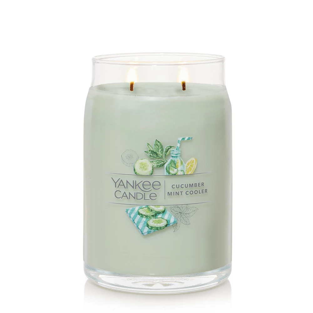 Upgrade the aroma of your space with this Yankee Candle Cucumber Mint Cooler 20-oz. Candle Jar.