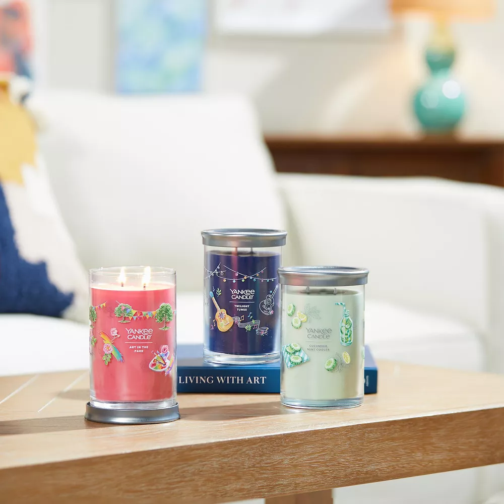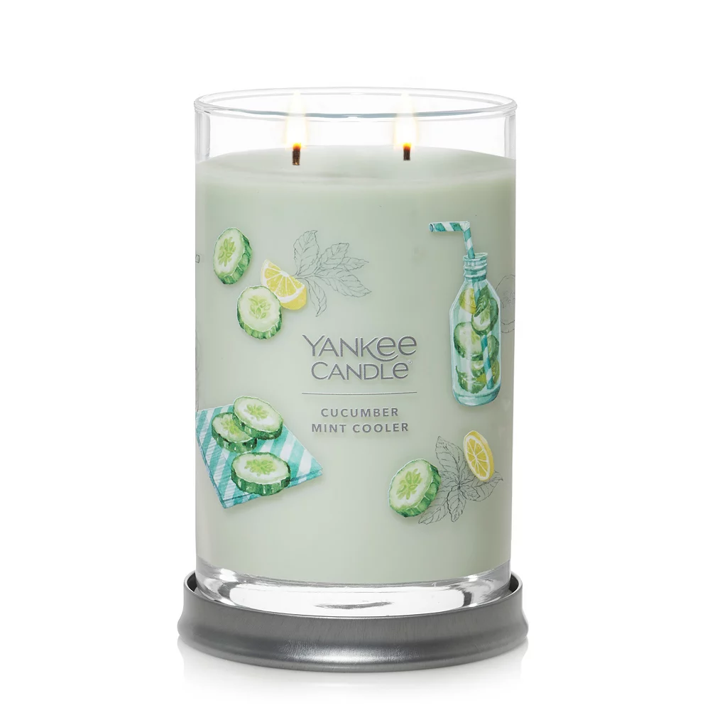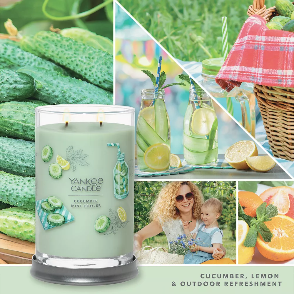Upgrade the aroma of your space with this Yankee Candle Cucumber Mint Cooler 20-oz. Tumbler Candle Jar.