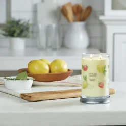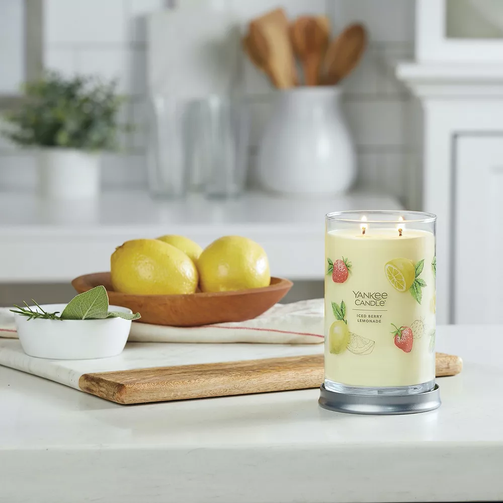 Experience the Yankee Candle brand, totally reimagined. A fresh take on our Tumbler shape features a brushed tin lid that fits neatly under the base to serve as a candle coaster.