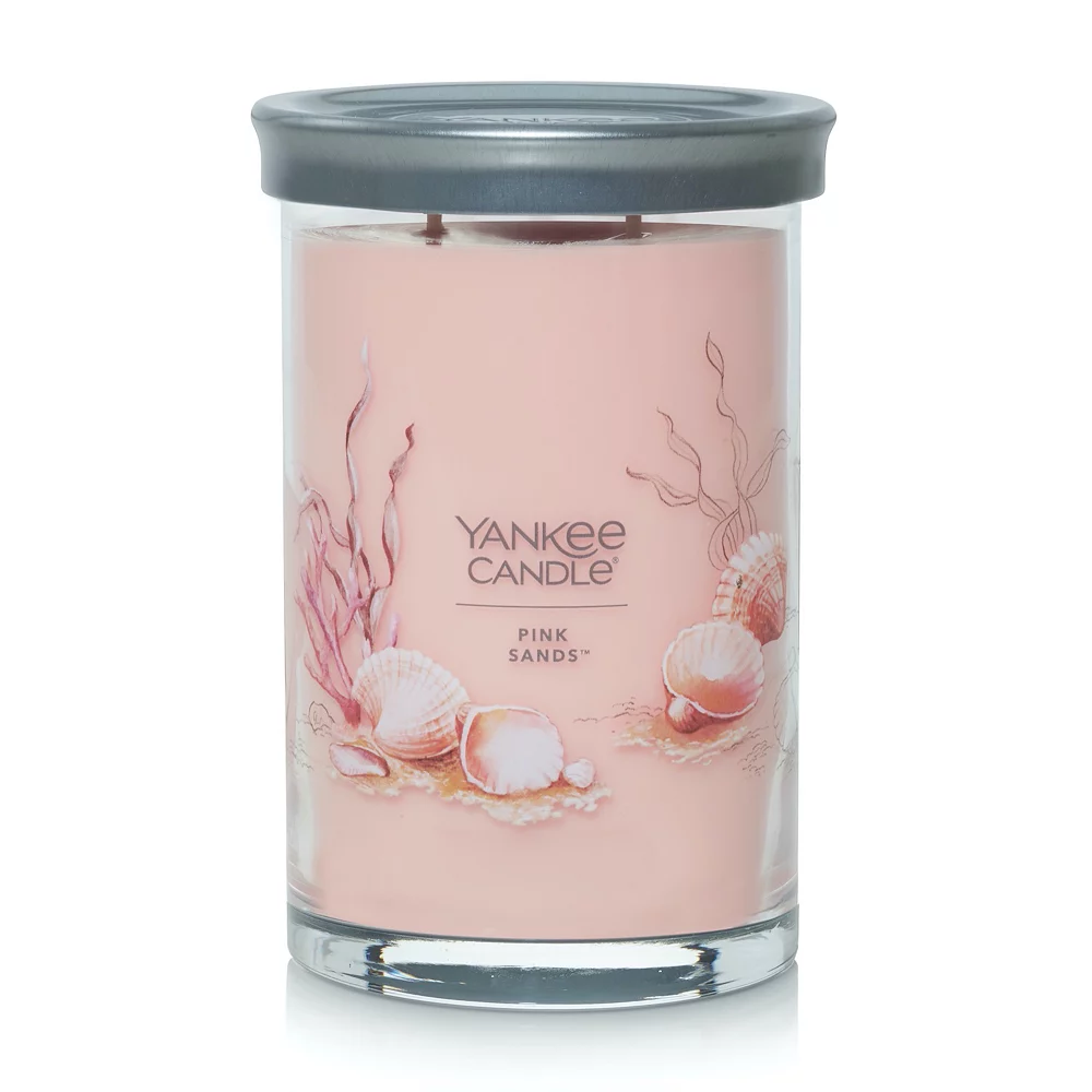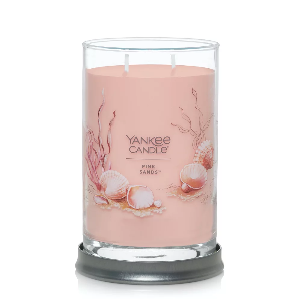 Experience the ultimate scent sensation with this inviting Yankee Candle Pink Sands Signature 2-Wick tumbler candle.
