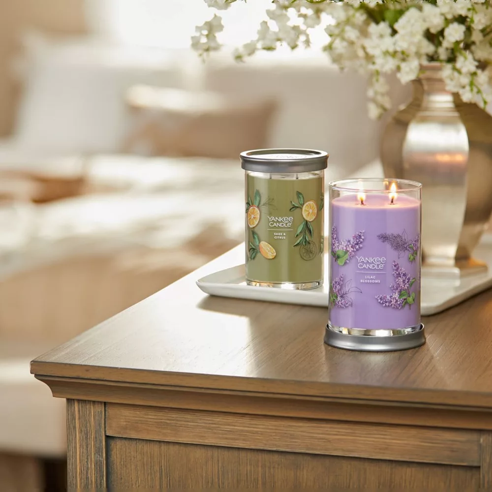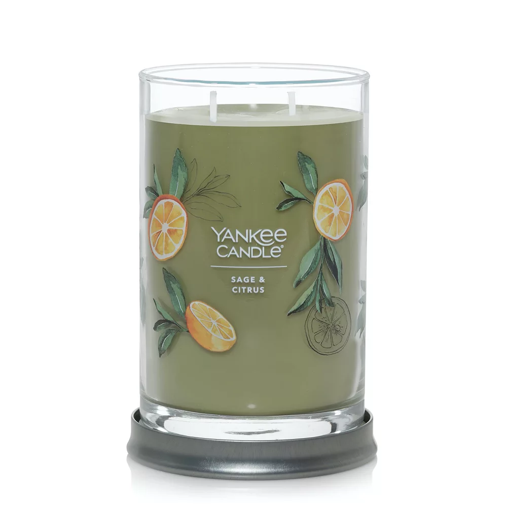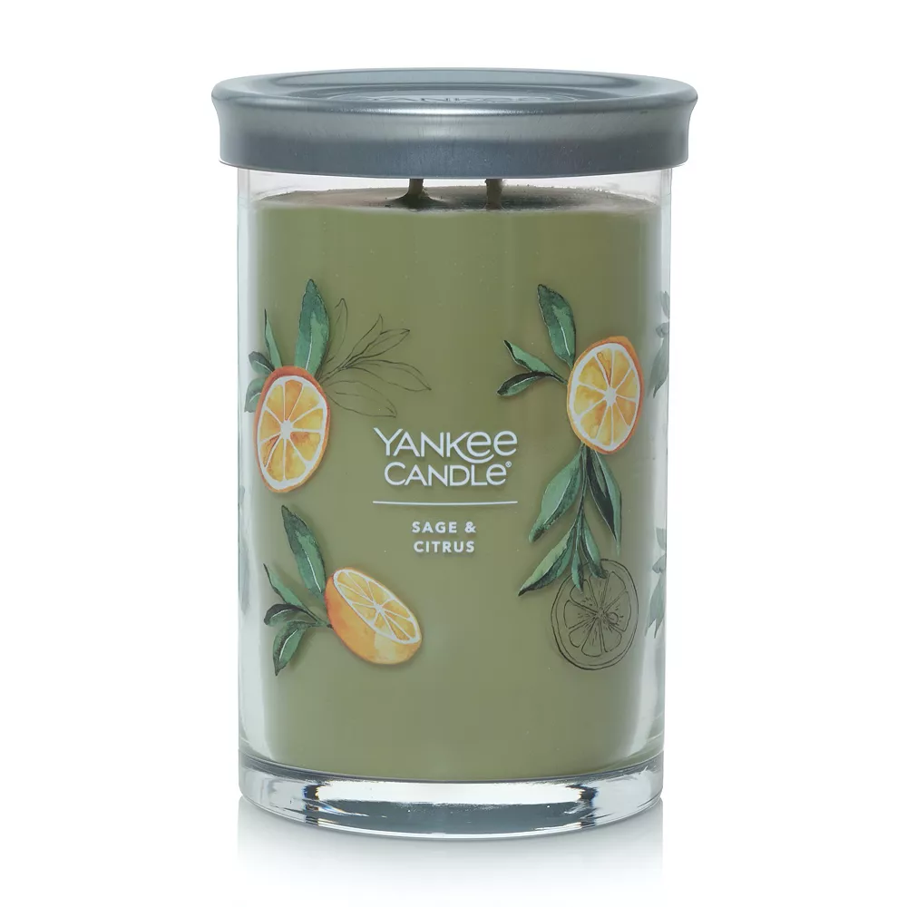 Experience the ultimate scent sensation with this inviting Yankee Candle Sage & Citrus Signature 2-Wick tumbler candle.